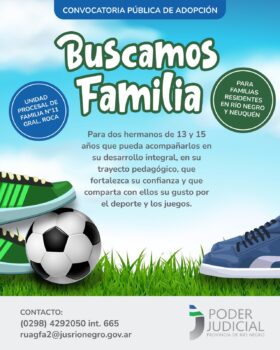 El Juzgado de Familia de General Roca realizó el llamado a Convocatoria Pública de Adopción de dos hermanos de 13 y 15 años.
